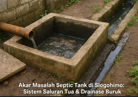 Septic tank berperan besar dalam sistem sanitasi, namun perhatian terhadapnya biasanya baru muncul ketika masalah sudah parah. Di wilayah Slogohimo, masih banyak rumah yang menggunakan saluran pembuangan lama dengan konstruksi seadanya. Kondisi ini sering memicu masalah serius ketika saluran tidak lagi berfungsi optimal.
