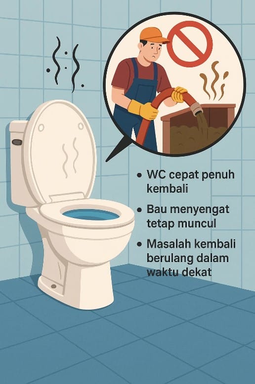 Padahal, bau yang menyebar bisa jadi tanda septic tank penuh — terutama jika disertai gejala lain seperti air WC lambat turun atau munculnya suara gelembung saat flush.