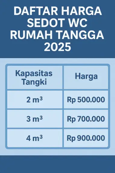 Struktur ini dijelaskan secara lengkap pada struktur daftar harga sedot wc yang menampilkan rincian tiap kategori dan tambahan biaya opsional secara transparan.