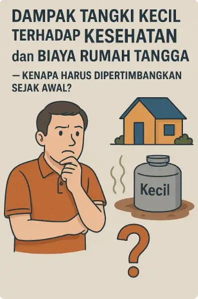Karena cepat penuh, limbah dari tangki kecil lebih mudah meluap dan merembes ke tanah. Ini bisa mencemari air sumur di rumah, bahkan menimbulkan genangan di permukaan tanah.