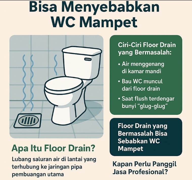 Floor drain yang bermasalah sering kali jadi penyebab WC mampet yang tidak terdeteksi.