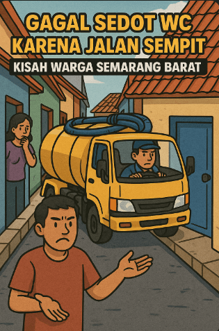 Pak Rudi, warga RT 5 RW 3, pernah memesan layanan sedot WC saat kondisi septic tank rumahnya sudah hampir meluap. Namun, setelah teknisi datang, truk mereka tidak bisa masuk karena akses jalan hanya selebar dua meter dan dipenuhi kendaraan parkir.