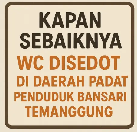 Warga Bansari disarankan tidak menunggu sampai masalah besar muncul. Dengan mengenali waktu ideal penyedotan WC, pemilik rumah bisa lebih siap dan menghindari biaya tambahan akibat perbaikan saluran.