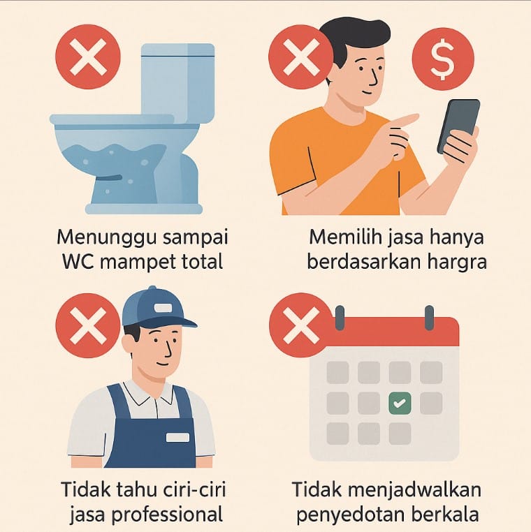 Sedot WC adalah bagian penting dari perawatan rumah yang sering dianggap sepele. Sayangnya, banyak orang melakukan kesalahan yang justru membuat masalah makin parah — mulai dari memilih jasa yang salah hingga waktu penyedotan yang tidak tepat.