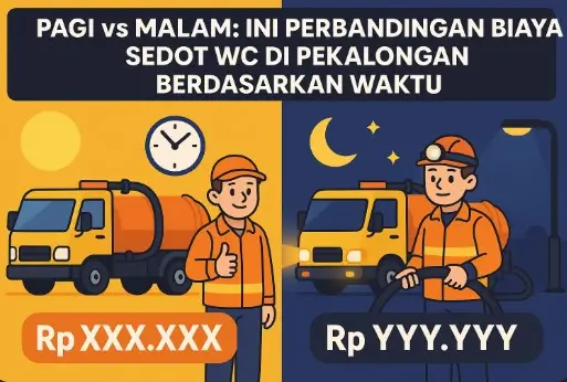 Tahukah kamu bahwa waktu memesan layanan sedot WC bisa memengaruhi harga yang harus dibayar? Di Pekalongan, beberapa penyedia jasa menerapkan tarif berbeda antara pagi dan malam hari.